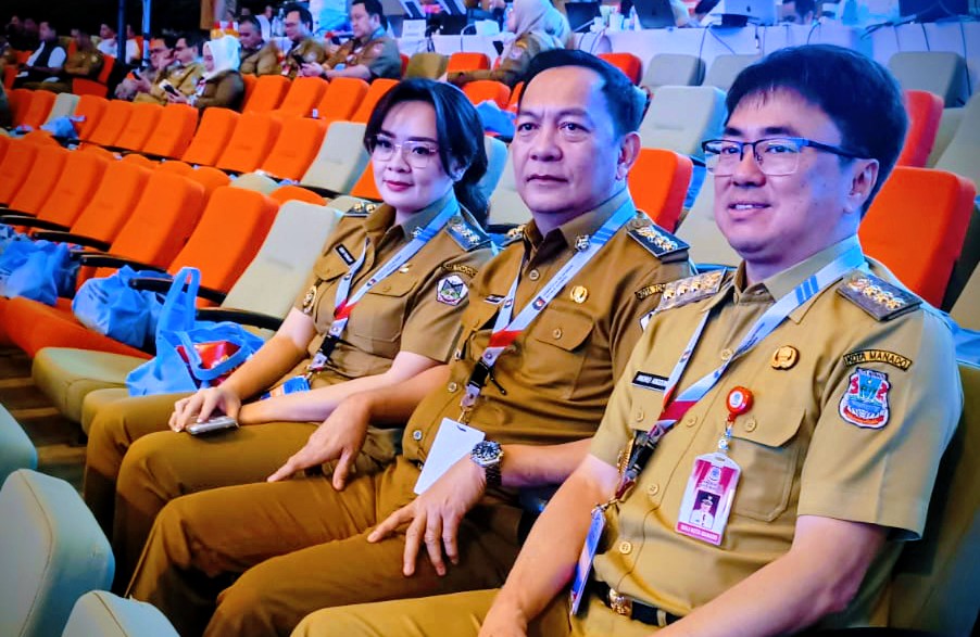 TOMOHON – Wali Kota Tomohon Caroll Joram Azarias Senduk, SH dan Wakil Wali Kota Sendy G.A. Rumajar, SE, M.I.Kom bersama jajaran FORKOPIMDA Tomohon, Ketua DPRD: Ferdinand Mono Turang, S.Sos; Kapolres Tomohon AKBP Nur Kholis, S.I.K.; Kajari Tomohon: Dr. Reinhard Tololiu, SH, MH ; Dandim 1302 Minahasa: Letkol Inf. Bonaventura A.F.S, menghadiri Rapat Koordinasi Nasional (Rakornas) Tahun 2026 yang mengangkat tema: “Sinergi Pusat dan Daerah dalam Implementasi Program Prioritas Presiden menuju Indonesia Emas 2045”, yang dilaksanakan di Sentul International Convention Center (SICC), Bogor, Jawa Barat, Senin (02/02/26).