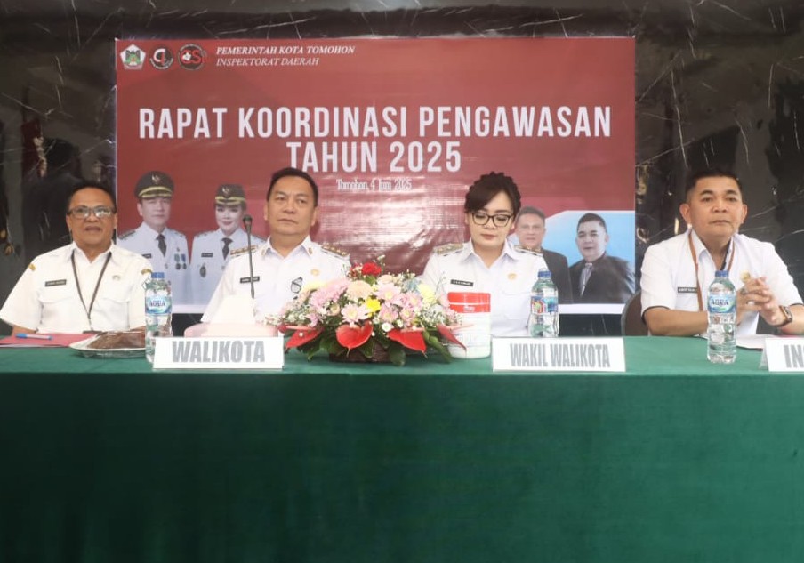 TOMOHON – Wali Kota Tomohon Caroll Joran Azarias Senduk, S.H. dan Wakil Wali Kota Tomohon Sendy G. A. Rumajar, S.E., M.I.Kom. (CSSR) menghadiri Rapat Koordinasi (Rakor) Pengawasan Pemerintah Kota Tomohon tahun 2025 di Aula Inspektorat Tomohon, Rabu (04 /06/25).